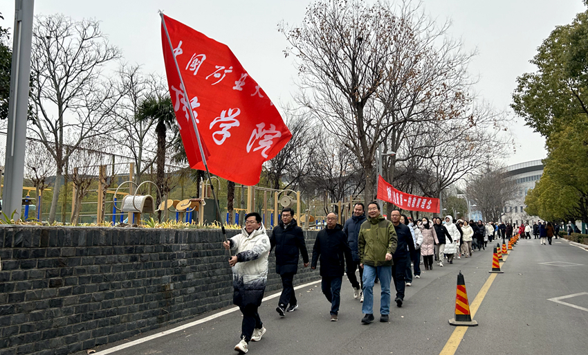 院旗飘扬,教职工们精神抖擞、步伐矫健,沿既定路线整齐出发,途经图书馆、博物馆等处,全程约3.2公里。行进过程中,教职工们意气风发、井然有序,展现出徐海人踔厉奋发、团结协作的精神风貌。